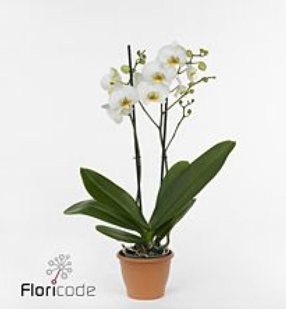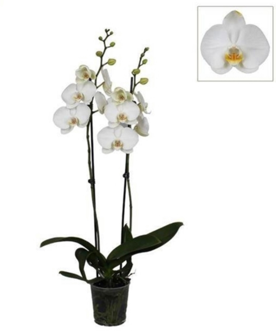 A stunning classic orchid plant. In a ceramic pot and gift bag. (Colour may vary)